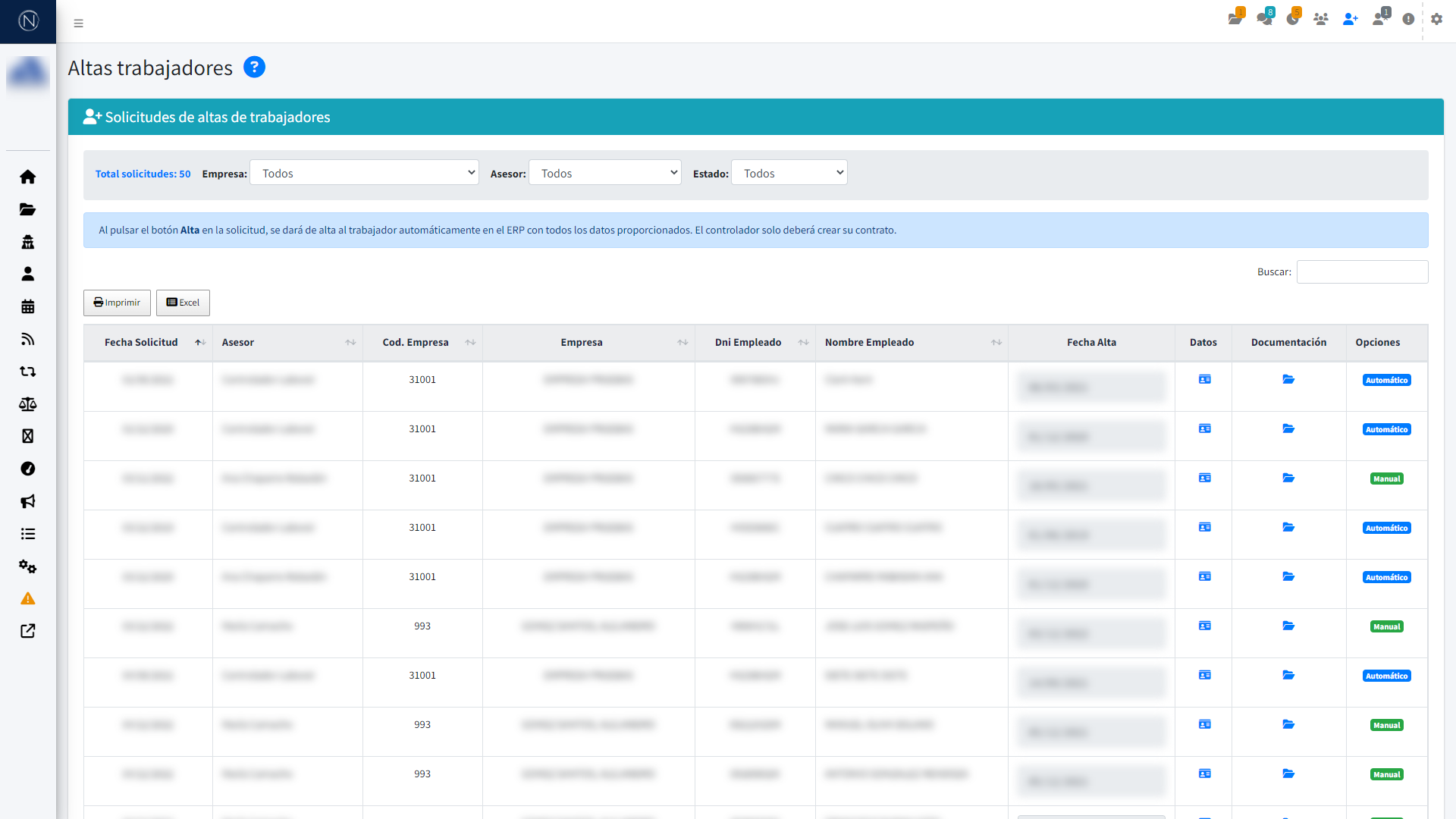 Toda la documentación referida a contratos, nóminas, certificados, análisis, facturas y albaranes, etc. Podrás descargarla e imprimirla siempre que la necesites.