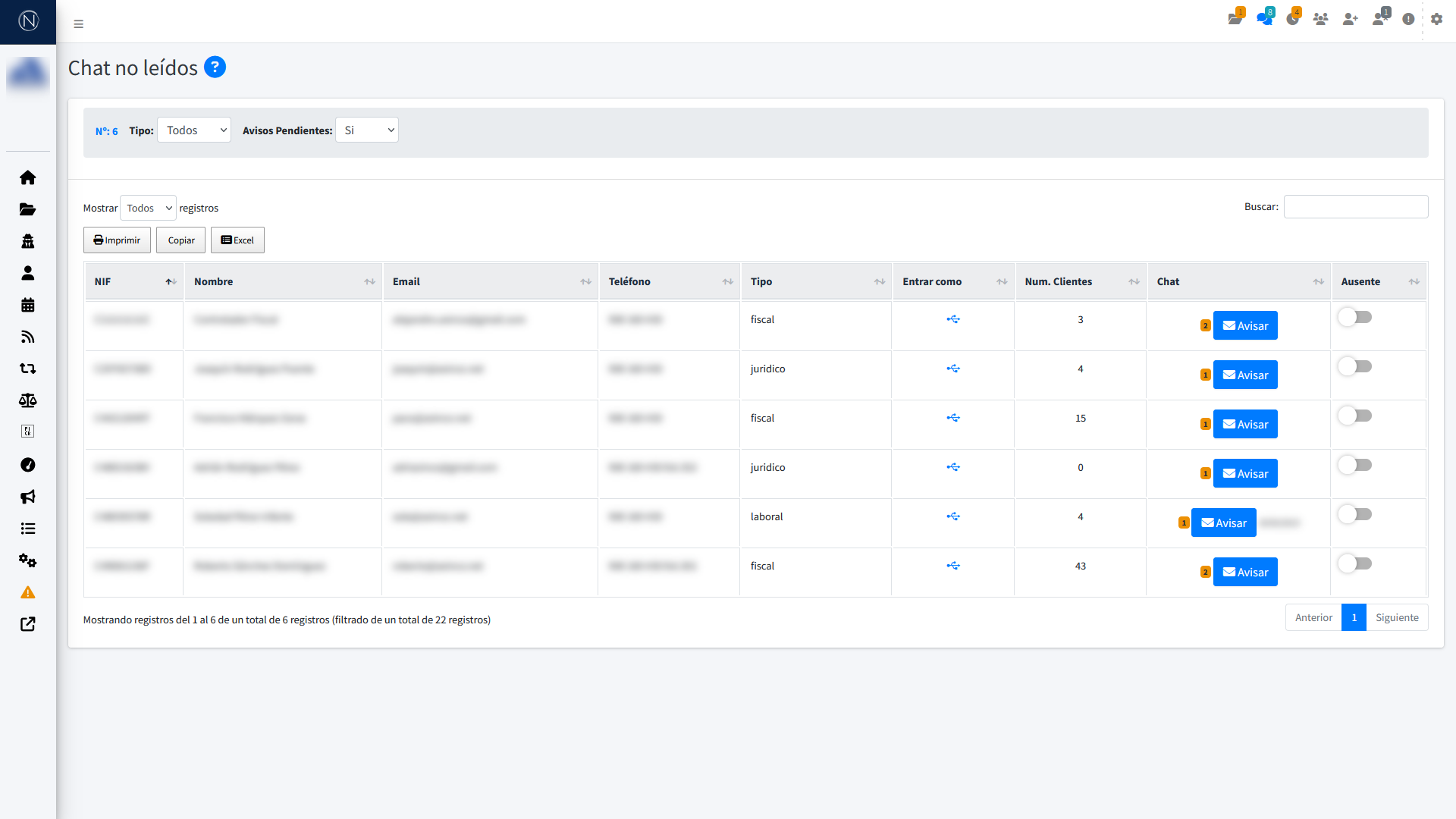 Desde el despacho se gestionan los avisos y notificaciones en tiempo real de forma automática.